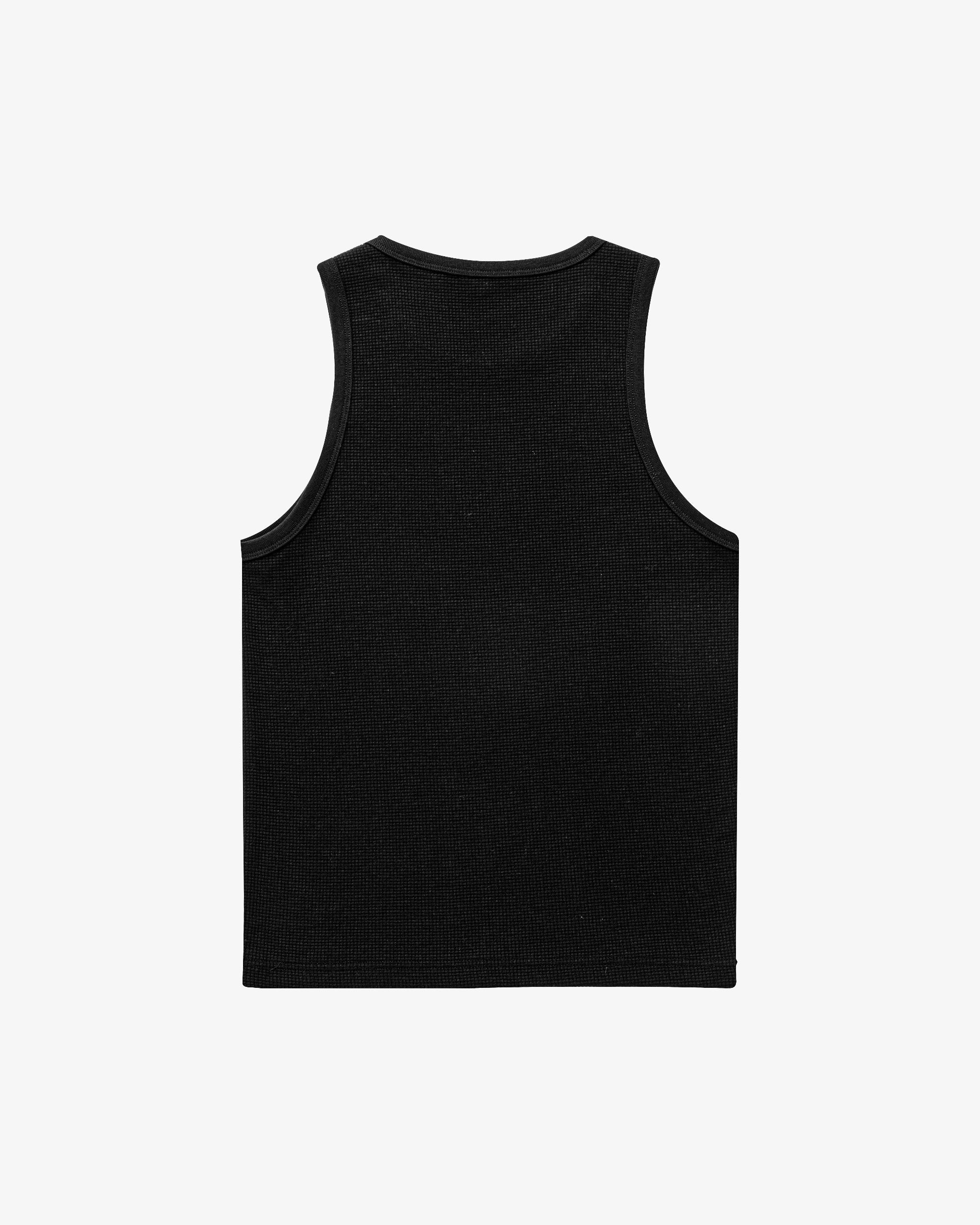 Sleeveless tank made from waffle knit cotton blend. Designed with a straight fit and textured finish. Lightweight and breathable construction.